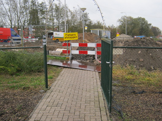 Aan de zuidkant van het tunnelterrein (oost), bij de familie Wieringa voor de deur, een kersverse zandbak en een tijdelijke verlegging van de fietsroute. De bestrating werd verbeterd, hier ging nog wel eens iemand onderuit….
