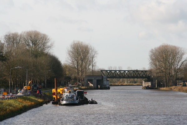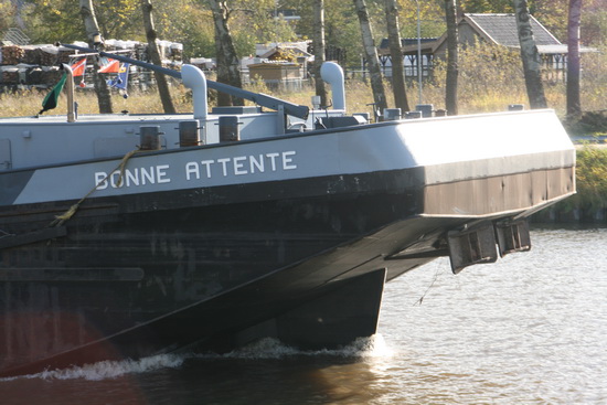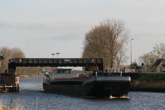 Op naar de zuidkant van het Van Starkenborghkanaal. Niet te hard lopen, de brug is omhoog. Een forse binnenvaarder zonder lading, de “Bonne Artante” als ik het goed heb onthouden, spoedt zich naar zijn bestemming. Het goederenvervoer over het (binnen)water wordt steeds belangrijker, als je de geweldige investeringen ziet: Kanalen uitbaggeren en verbreden, wegen verleggen inclusief tunnels, rotondes en vaste hoge bruggen, buizen dieper verzinken, wat een werk(gelegenheid)!