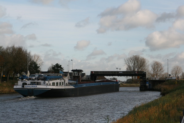Ik verleg even weer de horizon… Kijk naar de “Shalimar”, een grotere binnenvaarder, zo’n 3000 ton… Of zit ik er naast?