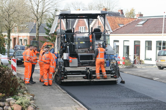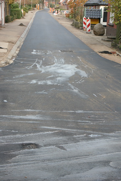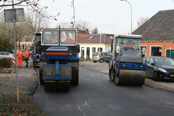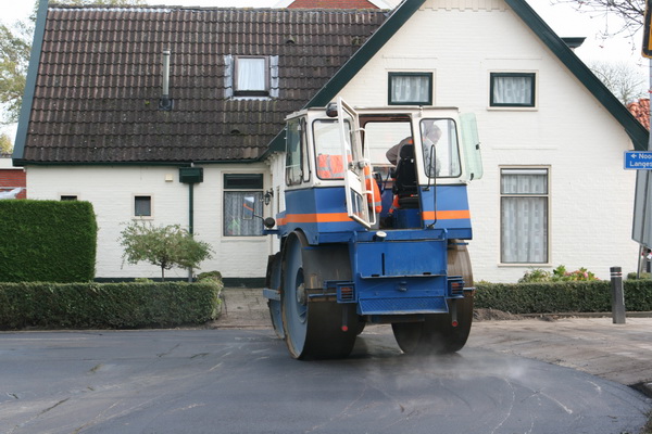 De slotreeks van de 8-november-foto’s! Aangekomen bij de kruising Langestraat/Noorderweg/Nieuwstraat is het niet moeilijk de grote Canon in stelling te brengen. Het afronden van de werkzaamheden aan de Noorderweg en de bocht van de Langestraat is in zijn eindfase. Het asfalt even op temperatuur laten komen, dan kan later diezelfde vrijdag het bord “GESTREMD” aan de kant. Fraai resultaat na de rioleringswerkzaamheden en bovendien kan het verkeer weer “een kant op….”