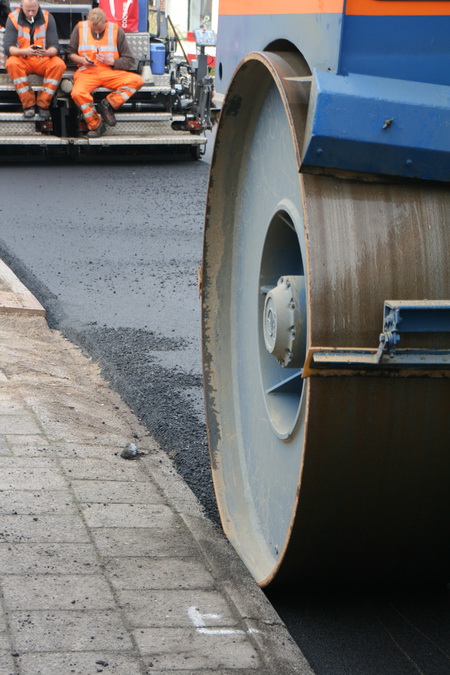 Het bezemwerk bekroond door de wals! Zo leg je een mooie asfaltvloer!