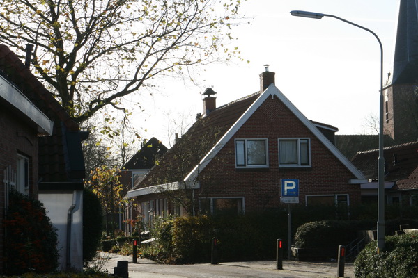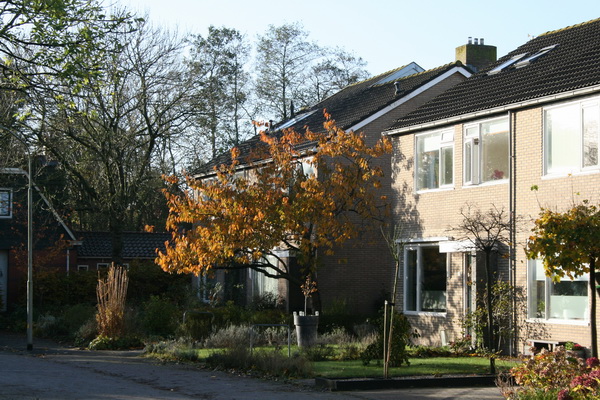 Aan de Oosterweg staat het ooit door Willem Bargerbos gebouwde dubbele huis in het herfstzonnetje. De dubbele woning straalt, oogt gelukkig!