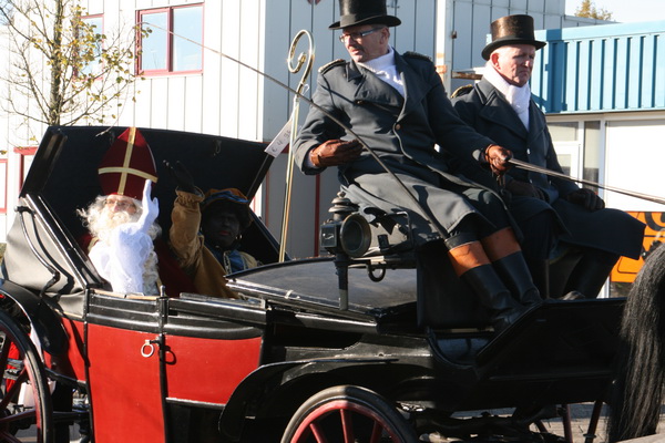Na de muziek volgt het rijtuig met Sint en hoofdpiet, wuivend als vorst en vorstin…. (Nee, niet de koningin van Lombardije…)