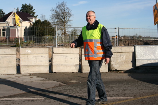 De entree tot Noordhorn tussen de twee tunnelterreinen door wordt ” bewaakt” door ervaren verkeersregelaars als Ginus van der Velde. Wat een rijkdom, zulke vrijwilligers!