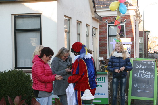 Bij de schuurverkoop even geen klanten, die staan langs de weg om verrast te worden door Zwarte Piet!
