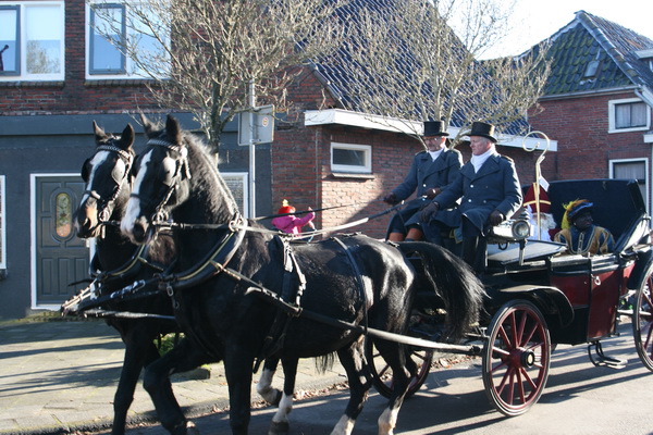 Daar gaat de stoet richting de Langestraat, toegangspoort tot het dorp Noordhorn. En de Pieten zich maar verbazen over de zandbakken aan weerszijden….