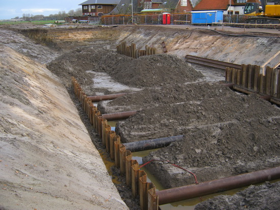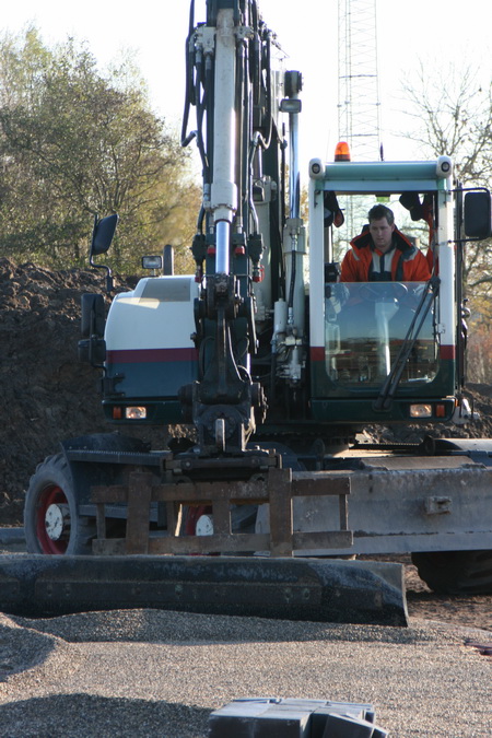 Het tunnelterrein oost, waar “plotseling” op de rechthoeken tussen de buizen hopen grond zijn verschenen… Zo wordt er grond afgegraven, zo wordt er weer grond teruggebracht… (Heeft iemand hier een verklaring voor? Ik heb vanmiddag geen tijd om “bij kantoor” langs te gaan…)