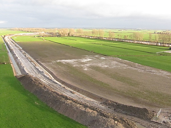 Het tracé van de te verleggen N355 van het dorp naar de nieuwe brug richting Aduard!
