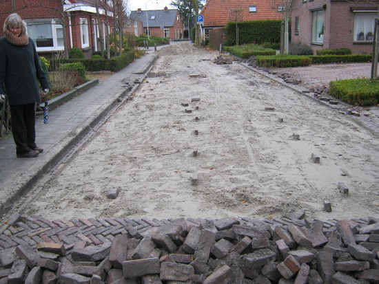 het herstraten van de Oosterweg vlot snel! De mannen van Oldekamp weten wat aanpakken is. Hierover stuurde Anne Adema een berichtje: