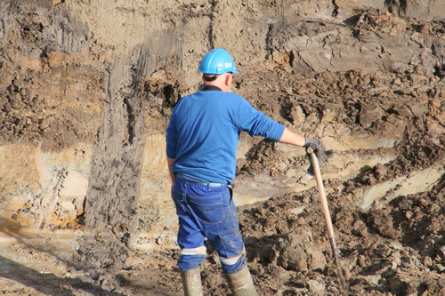Ja, hier was ik gisteren blijven steken. Nee, niet in de klei zelf, want daar, op die werkplek, kom je niet zo gemakkelijk (en terecht!) In de reeks foto’s van 26 november, toen het toch nog even zonnig werd. Ja, ik heb een voorliefde voor de Volvo-gravers! Daar kun je eindeloos naar blijven kijken (wat sommigen zoals Herman Kalf sr ook doen, soms…)