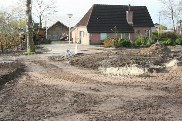 De rotonde ligt te wachten op de komst van de asfalteerders! De kleur van de gemalen steen, moderne ondergrond voor de dikke deklaag. (En even eraan denken: De N355 is gestremd het komende weekeinde, van vrijdagavond 29/11 (19.00 uur) tot zondagavond 1/12 (22.00 uur)! Als ik goed ben ingelicht, betreft het alleen het N355-deel tussen afslag Langestraat Noord en de afrit bij de Langestraat Zuid! (We kunnen Noordhorn dus wel in en uit….)