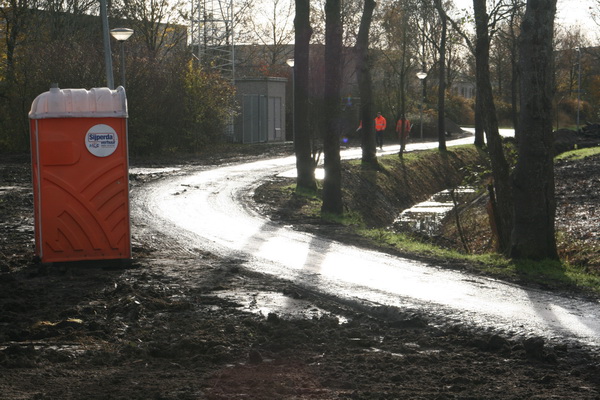 Veranderd decor! De aansluiting van het nieuwe fietspad langs de omleidingsweg op de Mokkenburgweg. Zo te zien wordt dit gedeelte meegenomen in de asfaltering, komend weekeinde!