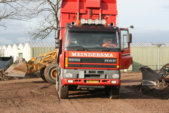 Dat gaat snel hoor, aan de zijkant, het laden en afvoeren! Hier lijkt het net of de Volvo een aanhanger leeg schraapt, maar dat is denk ik toch gezichtsbedrog….