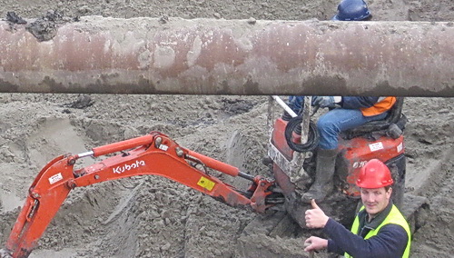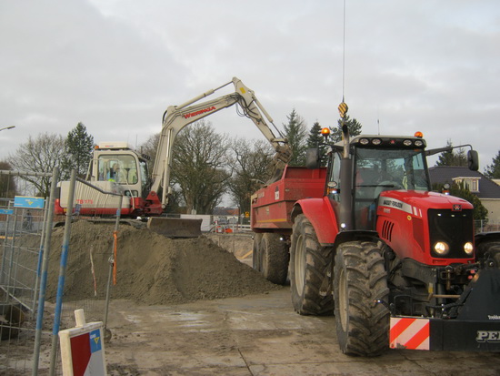 Bij de tunnelkuip oost staat de robuuste Massey Ferguson met kiepkar. Zand brengen voor de tunnelbodem…
