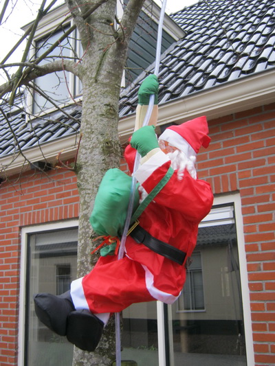 Terwijl de Sint met zijn veelkleurige dienstknechten nog worstelt met de storm, laat fysiotherapeute Linda de Kerstman al boompje klimmen in de Schippersstraat…. Dat klimmen schiet trouwens niet echt op..
