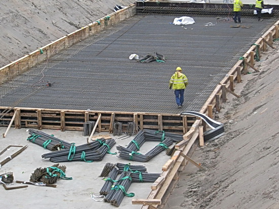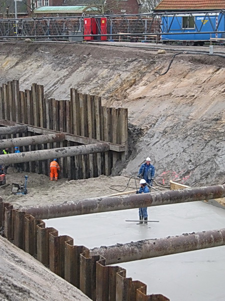 Hier is dat staalvlechten beter te zien… Wordt het beton vanaf maandag in speciale auto’s aangevoerd? Hoeveel ladingen zouden er nodig zijn voor één (van de tien) compartiment(en)???!