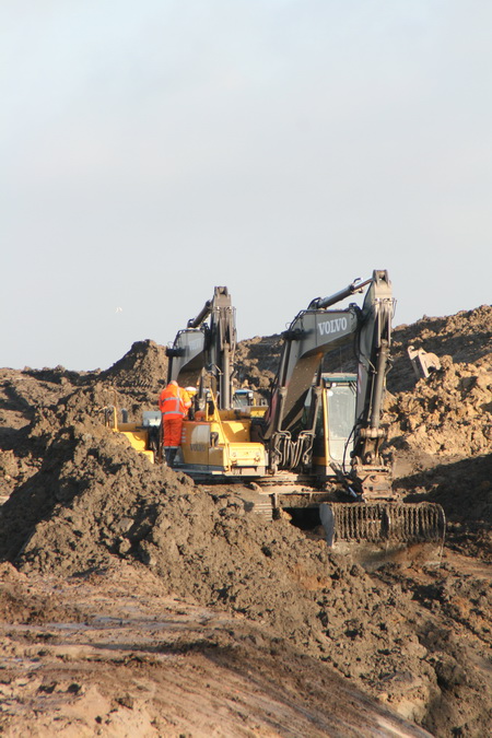 Voor de Volvo-gravers is het ook eindelijk weekend… Nog even afsluiten en dan “Dag!” zeggen, “Tot maandag!” Ze hebben geweldige vorderingen gemaakt, meters opgeschoven naar het oosten, maar de uiteindelijke helling ligt er nog niet….