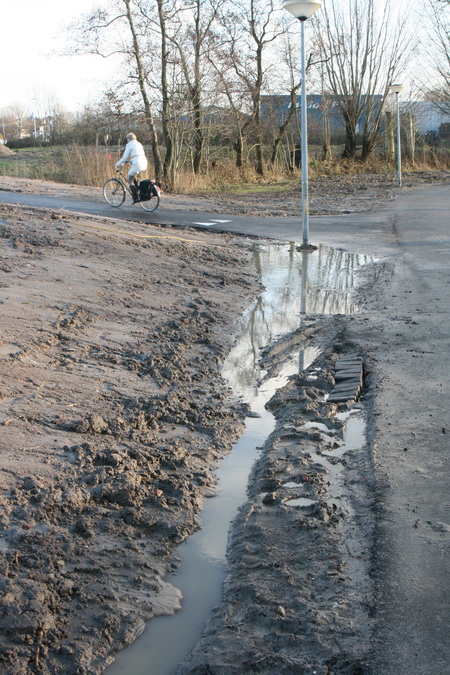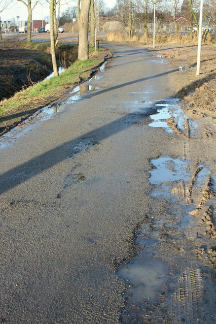 Verder geslenterd naar de Mokkenburgweg en weer met enige ergernis gekeken naar de conditie van dit gedeelte. Als je dit vergelijkt met het nieuwe asfalt van omleidingsweg en rotonde…. Beschamend!