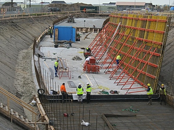 Zo is het hele tunnelgedeelte aan deze kant te overzien met de container van Oosterhof Holman nog steeds op de achtergrond. Van deze afbeelding zou, als ie iets scherper zou zijn, een prachtige legpuzzel te maken zijn van pakweg 1000 (of 2000….) stukjes…..