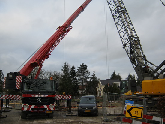 Vanaf de Mokkenburgweg zijn de drie kranen markante punten in het landschap. Alle drie in functie…. En, zoals ex-bouwvakker Hille Dijck terecht opmerkte, “je moet er niet aan denken dat dit allemaal met handkracht zou moeten gebeuren…!”