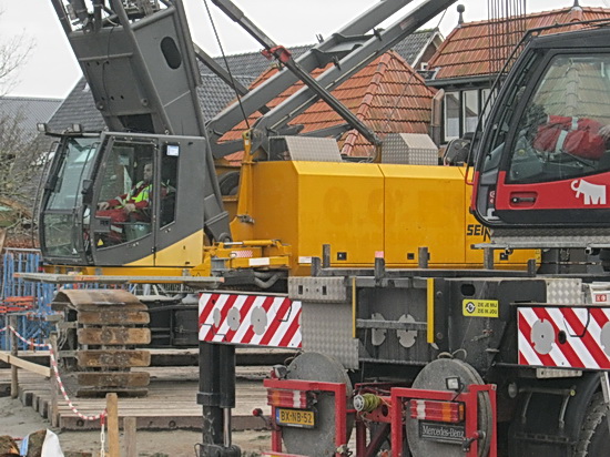 Het werk van beide kraanmachinisten lijkt zo heel gemoedelijk, ontspannend…. Maar je moet toch wel goed in de gaten houden wat er in en op het werkterrein gebeurt. Een ongeluk zit in een klein hoekje en kan veel persoonlijk en materieel leed veroorzaken, dus: “Koppie erbij!” En dat doen ze, geroutineerd aan de knoppen en de hendels!