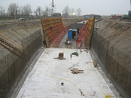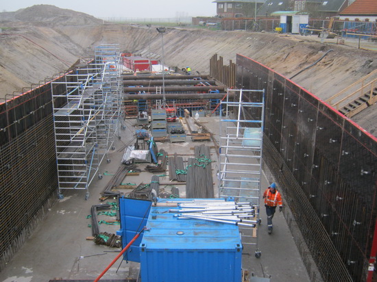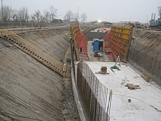 Aan de noordwestkant van de tunnel ook volop vlechtactiviteiten voor de wanden van de tunnel. Koude aangelegenheid!