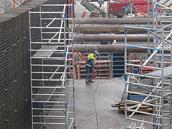 Kijkje langs de noordkant van de bekistingswanden. Weg- en waterbouw, toch nog steeds een Nederlandse specialiteit!