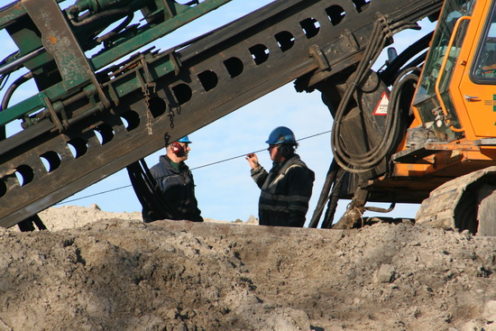 Ik laat de hei-installatie maar even voor wat ie is… Misschien worden ze wel nerveus van mij en dan komt er helemaal geen paal meer de grond in….