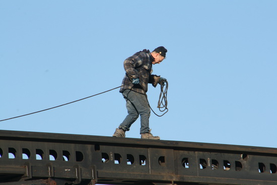Vervolg van de serie foto’s van maandag 3 februari jongstleden, bij de bouwput van de NVH-brug waren we gebleven. Problemen met de hei-installatie, de geleiders weer horizontaal, probleem oplossen….. :