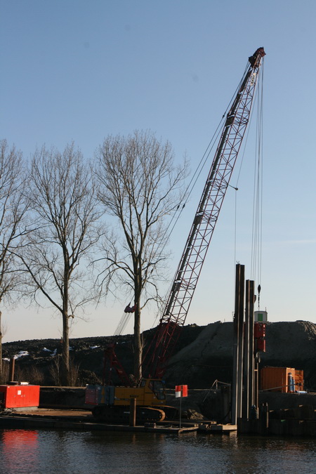 Ik hoor nu, net voor 12 uur (dinsdag 4 februari), het kenmerkende geluid van de hei-installatie… Gaan de palen bij het landhoofd/brughoofd aan de noordkant alsnog de grond in….