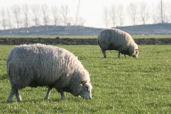 Foto vanaf het betonpad, schapen van, denk ik, Van Gosliga. Op de achtergrond het grondlichaam van de N355 richting nieuwe, vaste, hoge brug….