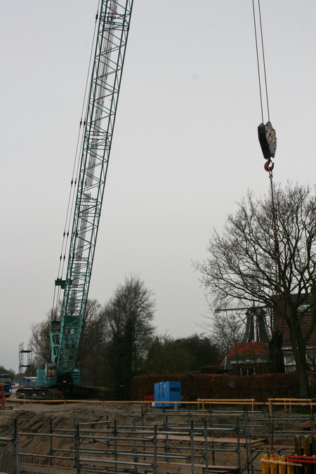 De kraan aan de noordwestkant die is ingeschakeld bij het vreemde bouwsel waarvan rechtsonder nog iets is te zien….