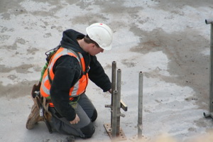 Ja, hier was ik gebleven, bij een van de schuine wanden aan de noordwestkant, waar altijd zoveel interesse bestaat voor wat er in die smalle ruimte tussen de bekistingen gebeurt… Met de neus er bovenop!