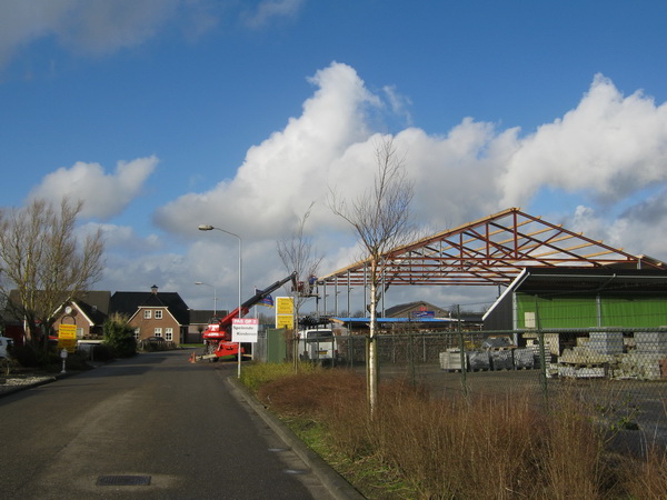 Vanaf de Mokkenburgweg zien we de vorderingen wat betreft de bouw van een nieuwe Veenstra-hal, aan de Handelsweg. Even gaan kijken?