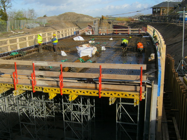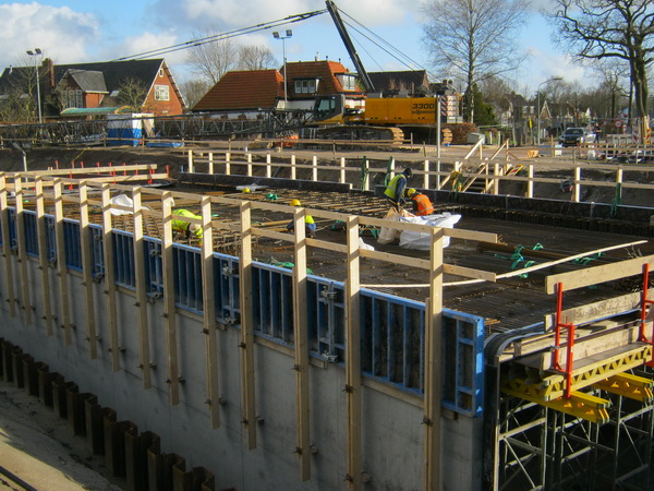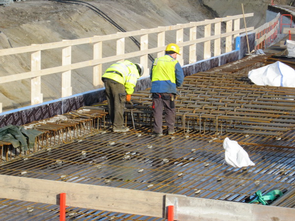 Tunnelbouw, zonovergoten! De buien zijn weggetrokken, het is nu heerlijk weer, ook voor de staaldraadvlechters op moot 4. Zaterdag, doorwerkdag….. Komende donderdag beton erop!