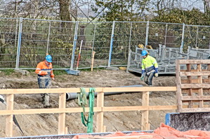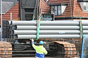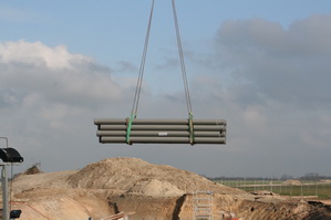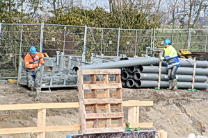 Daar is ie al… Een voor een gaan de buizen een verdieping lager, naast de tunnel aan de noordkant. Bijna rolt de Staphorster de buis achterna……