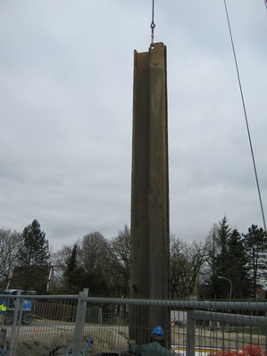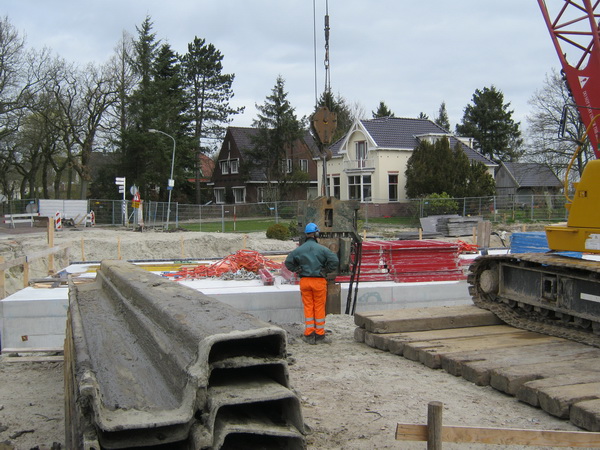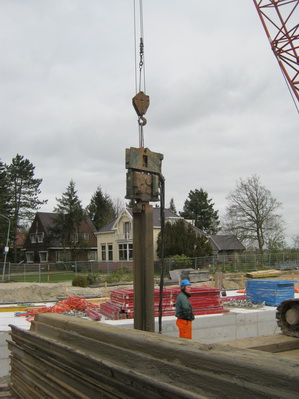 Als ik terugkeer uit het grootdorp, geprikt en wel, kijk ik een poosje naar de steunplatenverwijdering. Met een speciaal apparaat worden ze als het ware uit de grond getrild en naar boven gehaald. (Nee, niet gelijktijdig gewassen, dat komt later…)