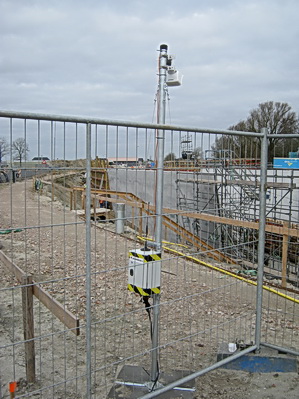 Ontdekt, een van de webcams, bij de entree van het tunnelkuipterrein aan de noordwestkant. Toch kan ik me voorstellen dat de mensen die op zo’n project werken niet bijster gelukkig zijn met deze vorm van observatie. En de projectleiding had zo’n initiatief op zijn minst even kunnen doorgeven aan de betrokkenen….