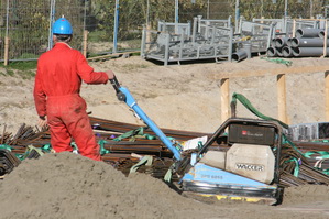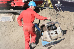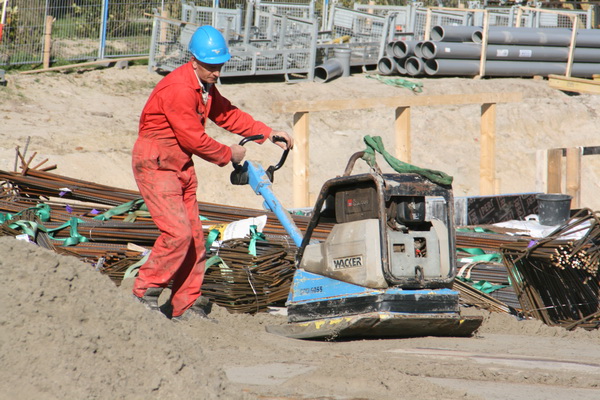 De kleine Wieringa kan trouwens meer dan graven en zand verplaatsen, of een trilapparaat… Hier wordt een zware rijplaat een plek op het podium gegund!