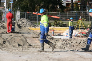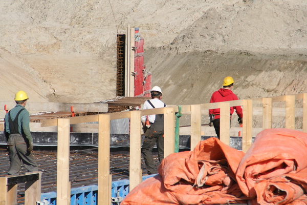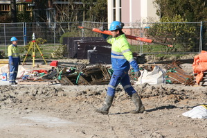 Mulder is nog steeds met zijn trilapparaat bezig… Nee, niet op de rijplaten, dat weet hij zelf ook wel… Helemaal rechts het statief met de meetcamera van Geomaat. Die tunnelbouw moet uiteindelijk wel precies uitgebalanceerd verlopen, niet een schots en scheve hotseknotsendoorgang, waartegen je over enkele jaren geen ‘U’ meer kunt zeggen…
