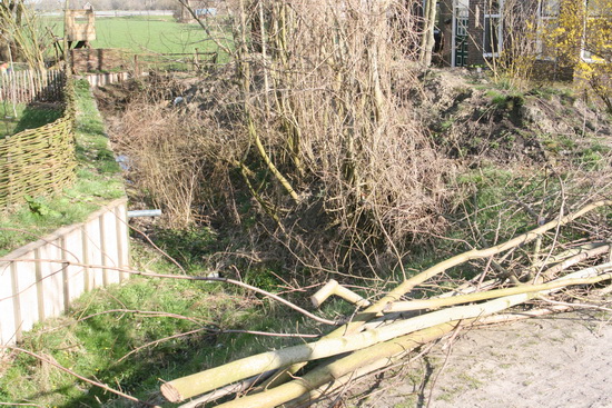 De toegang tot het achterliggende weiland is versperd door bulten grond.  Het project is onduidelijk…. Wie weet wordt het prachtig, maar erg hoopvol ben ik niet. Het einde van de roemruchte Tocht aan de oostkant?