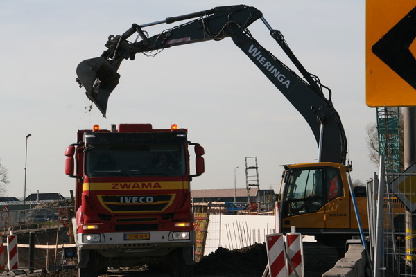 De ontvanger, de schepper, de richtingaanwijzer… De grond wordt afgevoerd naar de zuidkant van het kanaal, naar het grondlichaam van de NVH-brug.