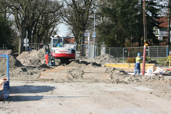 Ja, waar de rijplaten liggen, daar komt de ‘noodweg’ over moot 4, minder breed dan aanvankelijk in de bedoeling lag. Er komt immers eenrichtingverkeer náár het dorp… Wil je het dorp uit? Dan via de Langestraat Noord! Geeft trouwens wel problemen in de Nieuwstraat, waar nu al (en vaak op een vervelende manier) tegen de aangegeven richting in wordt gereden…. Een onzekere oude dame die volkomen verdwaald leek, een kleine bedrijfswagen die jakkerde, terwijl de chauffeur al jakkerend aan het bellen was… Hoop dat het hier vrij van ongelukken blijft…