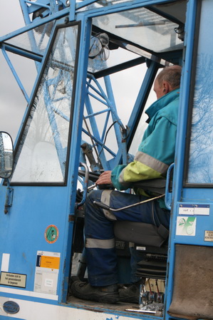 Kraanbestuurder Jan dirigeert het pakket bekistingshaken/beugels naar een geschiktere plek…
