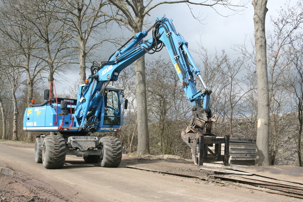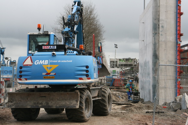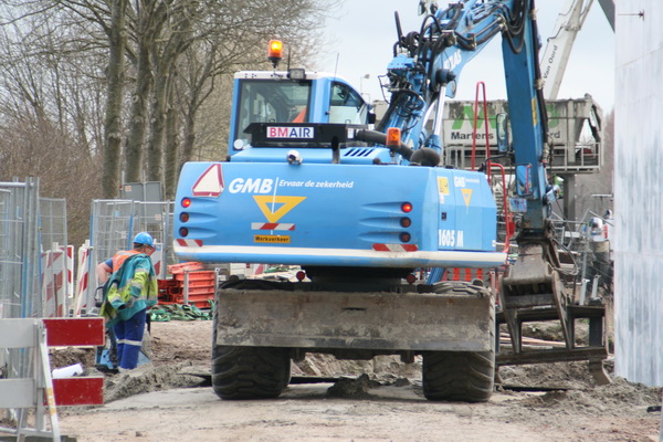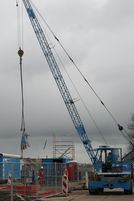 Even later is de GMB-grijper al weer bezig een rijplaat op te halen. De blauwe kapitein heeft een geweldige actieradius! Bewonderenswaardig! Zo is hij hier bij het kanaal, zo zie je hem aan de zuidkant of bij het tunnelterrein. Alsof de duvel hem op de hielen zit… (Dat hoop ik toch niet…)