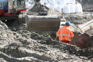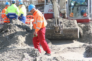 Is Henk toch in de loopgraaf afgedaald! Houdt een kritisch oog op het graafwerk. Met die leidingen weet je het maar nooit! (Kijk maar naar die  verzonken buizen in het Van Starkenborghkanaal, ook onverklaarbaar beschadigd…)