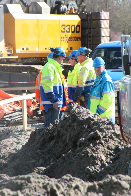 Nu zijn ze zichtbaarder, het drietal GMB’ers. Was er nog geen nieuwe werkkleding voor hoofduitvoerder Johan, of zweert hij bij oranje? In het midden uitvoerder tunnel Arjan en wie staat daar rechts???! Waarachtig! Henk Tippe!
