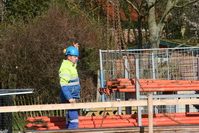 Terug naar de zonnige woensdagmiddag 26 maart jongstleden, een volgende reeks foto’s, gemaakt rond het tunnelterrein, want toen was de doorgang nog gestremd… Vele GMB-coryfeeën waren in de buitenlucht te vinden, gelokt door het fraaie weer. (En ze wilden hun nieuwe GMB-plunje wat graag laten zien!):