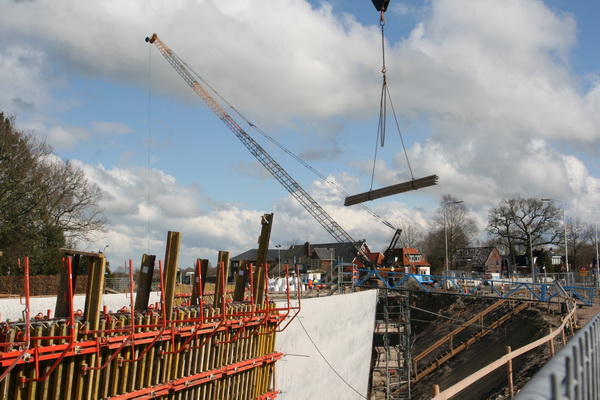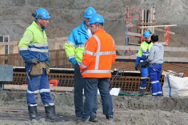 Aan de andere kant, bij moot 4 en 3, is er nog steeds topberaad. Iets verderop ook, maar dan meer op werkvloerniveau… Concreter, emmer bij de hand…