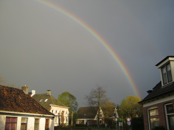 De regenboog die ons maandagavond prettig verraste… (De voorafgaande bui was een onprettige ervaring…)